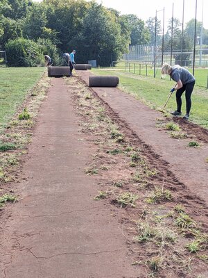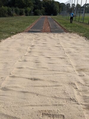 Vielen Dank an die fleißigen Helfer, die die Anlaufbahnen und Sprunggrube auf Vordermann brachten!
